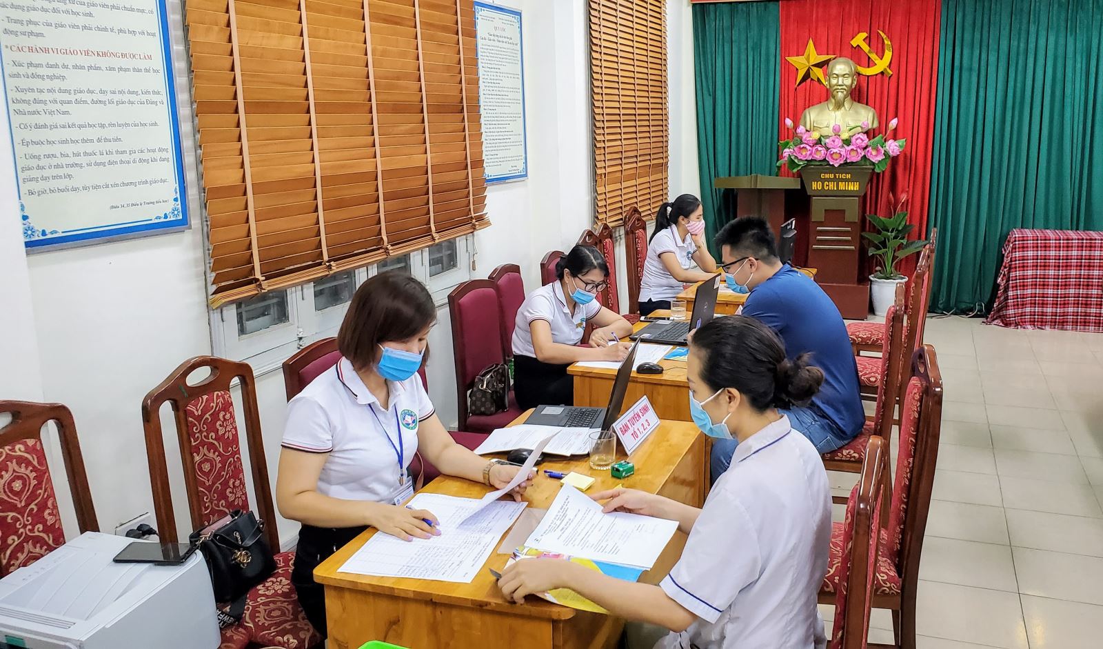 Nhà trường tận dụng phòng hội đồng làm phòng tuyển sinh, được xếp rất khoa học với khu tiếp đón, bàn tuyển sinh chia làm theo các tổ dân phố, bàn in ấn và hỗ trợ CMHS. Với kinh nghiệm và thao tác nhanh chóng, các bàn tuyển sinh làm việc rất nhịp nhàng, tận tình giải đáp các thắc mắc của PHHS, thực hiện đúng quy tắc ứng xử khi giao tiếp và trao đổi với CMHS. BGH luôn túc trực để trực tiếp đưa ra những chỉ đạo kịp thời liên quan đến tuyển sinh.