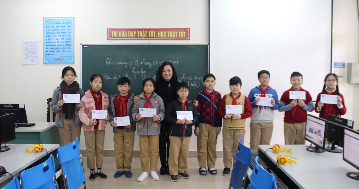 Chúc mừng các em! Chúc mừng sự đầu tư đúng hướng của cha mẹ các em! Chúc mừng sự tận tâm dìu dắt của các thầy cô giáo dạy Tiếng anh của nhà trường! Chúc các em sẽ tiếp tục phát huy tốt thành tích ở những vòng thi tiếp theo.