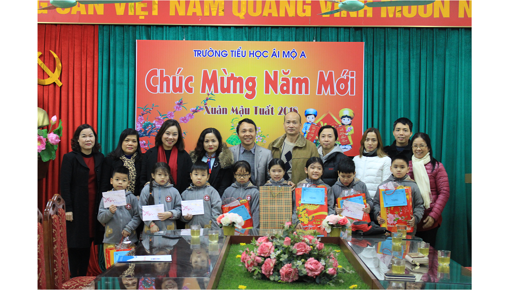 Mùa xuân, mùa của sum họp, của sự ấm áp tình yêu thương giữa con người với con người. Ai cũng có một mùa xuân, cũng có một gia đình, một mái ấm để đi về quây quần bên nhau.Với các em học sinh thì đó lại là niềm vui lớn vì các em được bố mẹ mua cho quần áo mới, thêm một tuổi mới. Nhưng không phải ai cũng được hưởng trọn niềm hạnh phúc dù là đơn sơ, giản dị ấy.Vẫn còn đâu đó quanh ta biết bao gia đình còn gặp nhiều khó khăn vì những hoàn cảnh khác nhau. Các cụ già không nơi nương tựa. Các em nhỏ vẫn còn chịu cảnh đói, rét mỗi sáng đến trường… Với tinh thần tương thân tương ái, lá lành đùm lá rách, chia sẻ khó khăn, với mong muốn mang đến một mùa xuân tràn đầy ấm áp,yêu thương, một cái Tết thật ý nghĩa, một niềm hạnh phúc dù là nhỏ nhoi biến những ước mơ tuổi thơ của các em trong dịp tết đến xuân về thành hiện thực, hàng năm, đến hẹn lại lên, hôm nay trường tiểu học Ái Mộ A tổ chức buổi họp mặt để trao quà Tết cho các gia đình chính sách và học sinh có hoàn cảnh khó khăn đã phấn đấu vươn lên trong môi trường học tập để trở thành con ngoan, trò giỏi.