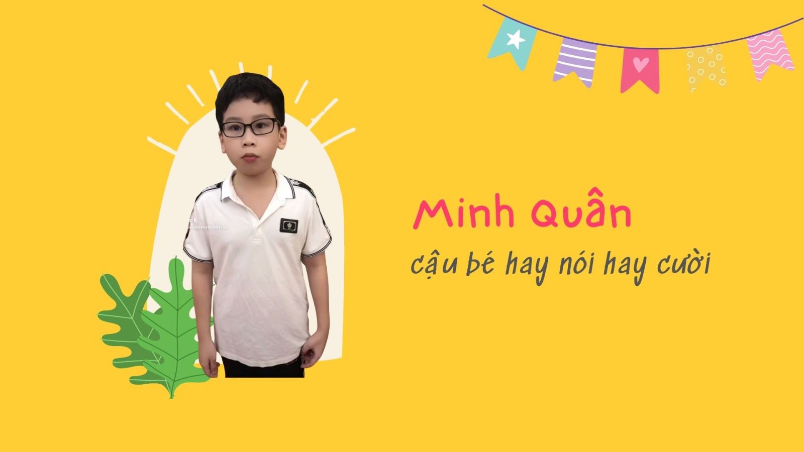 Ấn tượng đầu tiên khi gặp Quân đó là một cậu bé hay nói hay cười, em có thể ngồi hàng giờ để tìm hiểu những điều thú vị trong sách, hỏi hàng trăm câu hỏi trên trời dưới biển chỉ để thoả mãn niềm đam mê với sách và những kiến thức em muốn tìm tòi, khám phá. Em đặc biệt say mê với những cuốn sách khoa học. Đam mê sách là vậy nhưng không vì thế mà Minh Quân ít tham gia các hoạt động phong trào của lớp của trường. Ngược lại, em lại là người cực kì năng động. Bất kể kì cuộc nào của lớp bạn cũng tham gia đầy nhiệt tình. Môn học em yêu thích nhất là Toán và Tiếng Anh. Em còn kể chuyện rất hay, giọng kể cuốn hút và thể hiện được nhiều giọng nhân vật, lại hay có nhiều ý tưởng độc đáo.