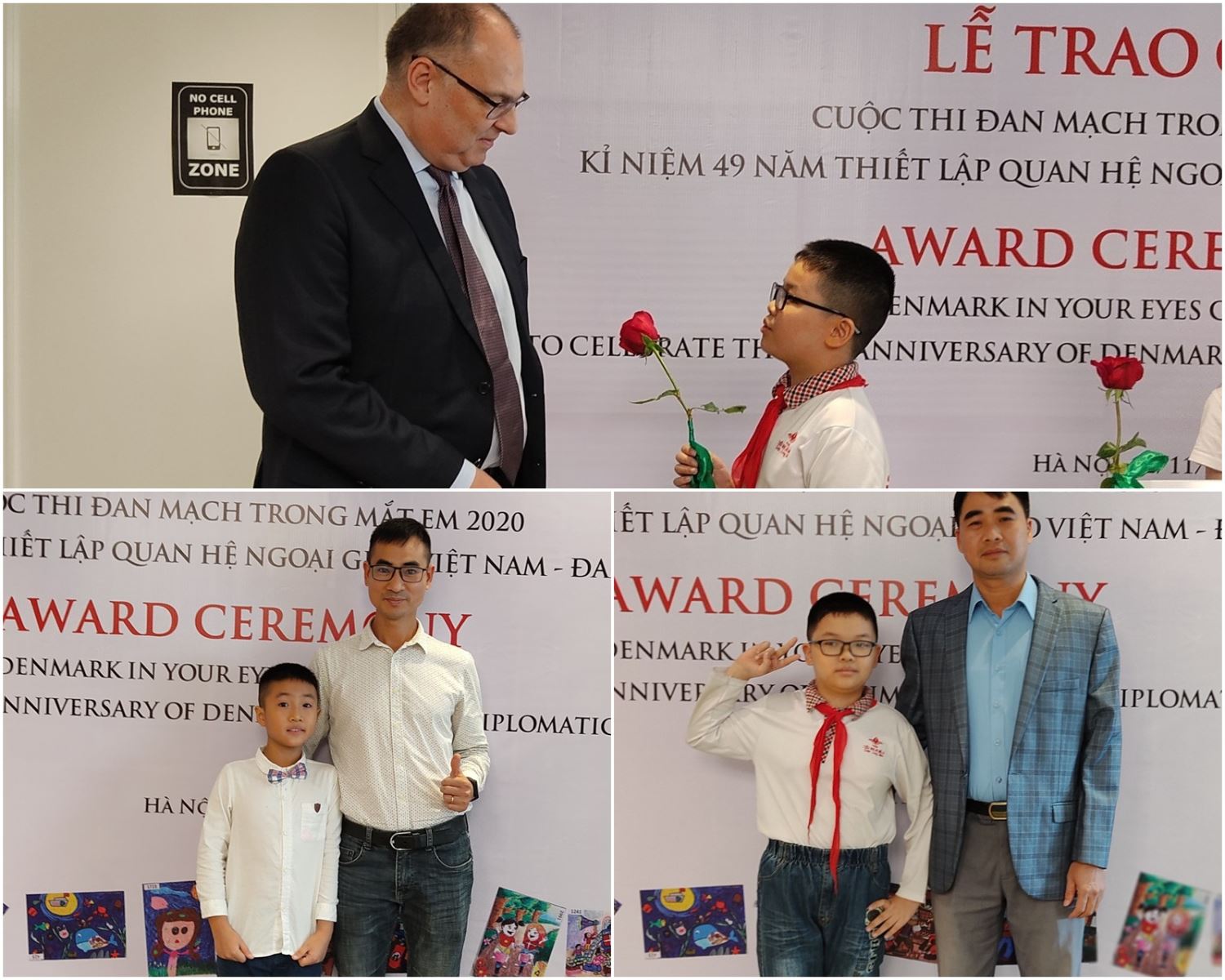 “Ngoài việc thể hiện hiểu biết sâu sắc về đất nước, con người, lịch sử và văn hóa của Đan Mạch, các cháu học sinh cả nước cũng đã gửi hàng nghìn lời chúc, thông điệp hướng tới kỷ niệm 50 năm ngày thiết lập quan hệ ngoại giao Việt Nam - Đan Mạch năm 2021. Với thông điệp “ Develop together and look beyond to the future” ( Cùng nhau phát triển, hướng tới tương lai) và xuất sắc vượt qua 20 câu hỏi về đất nước Đan Mạch và quan hệ hợp tác giữa hai nước Việt Nam – Đan Mạch, bạn Ngô Minh Bảo – lớp 5D vinh dự đứng thứ 10, bạn Nguyễn Đức Kiên lớp 3E đứng thứ 14 và bạn Đoàn Nguyễn Minh Khuê lớp 1D đứng thứ 15 trong 21 bạn nhận giải.