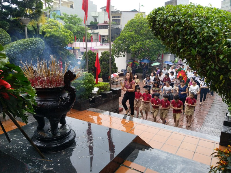 8h00 sáng ngày 27/7, thầy và trò trường Tiểu học Ái Mộ A do cô giáo Nguyễn Thị Bích Huyền – Bí thư chi bộ, Hiệu trưởng nhà trường làm trưởng đoàn đã đến viếng và dâng hương tại Đài tưởng niệm liệt sĩ phường Ngọc Lâm. Đây là một trong những hoạt động ngoại khóa thường niên mà nhà trường hết sức chú trọng để giáo dục học sinh phát triển toàn diện. Thay mặt đoàn, cô giáo Nguyễn Thị Bích Huyền đã gửi lời tri ân đến các anh hùng liệt sĩ và nguyện hứa sẽ cùng tập thể giáo viên, cán bộ và hơn 1000 học sinh nhà trường luôn noi gương các thế hệ cha anh đã đi trước, không ngừng học tập, phấn đấu để cống hiến công sức, trí tuệ góp phần bảo vệ Tổ quốc, xây dựng đất nước ngày lớn mạnh như mong ước của Bác Hồ khi sinh thời.