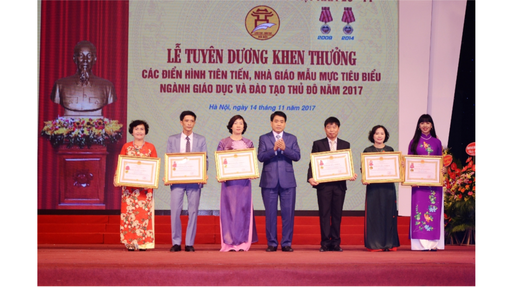 Tai buổi lễ, 6 tập thể, gồm: MN Hoa Hồng (quận Cầu Giấy), TH Nghĩa Tân (quận Cầu Giấy), THCS Thạch Thất (huyện Thạch Thất), Phòng GD&ĐT quận Long Biên) đã vinh dự được đón nhận Huân chương Lao động hạng Nhì. 2 đơn vị được trao tặng HCLĐ hạng Ba là THPT Phan Huy Chú – Đống Đa và MN Minh Hải (quận Đống Đa). Ngoài ra còn có 8 tập thể đón nhận Cờ thi đua xuất sắc và 6 tập thể cùng 11 cá nhân được nhận Bằng khen của Thủ tướng Chính Phủ; 10 tập thể được nhận Bằng khen của Bộ GD&ĐT.