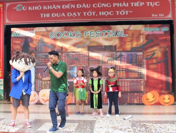 Mở đầu chương trình, các con học sinh toàn trường cùng nhau tham gia một phần khởi động vô cùng náo nhiệt. Với tài hóa trang, khéo léo tạo hình gương mặt, các anh chị của Trung tâm Tiếng Anh Language Link và các thầy cô giáo, học sinh trường tiểu học Ái Mộ A biến hóa thành nhiều nhân vật ấn tượng như thần chết, ma, phù thủy, thằng hề, công chúa…Tất cả các con đều tỏ ra phấn khích và nhiệt tình hòa cùng không khí sôi nổi mà người dẫn chương trình tạo nên.